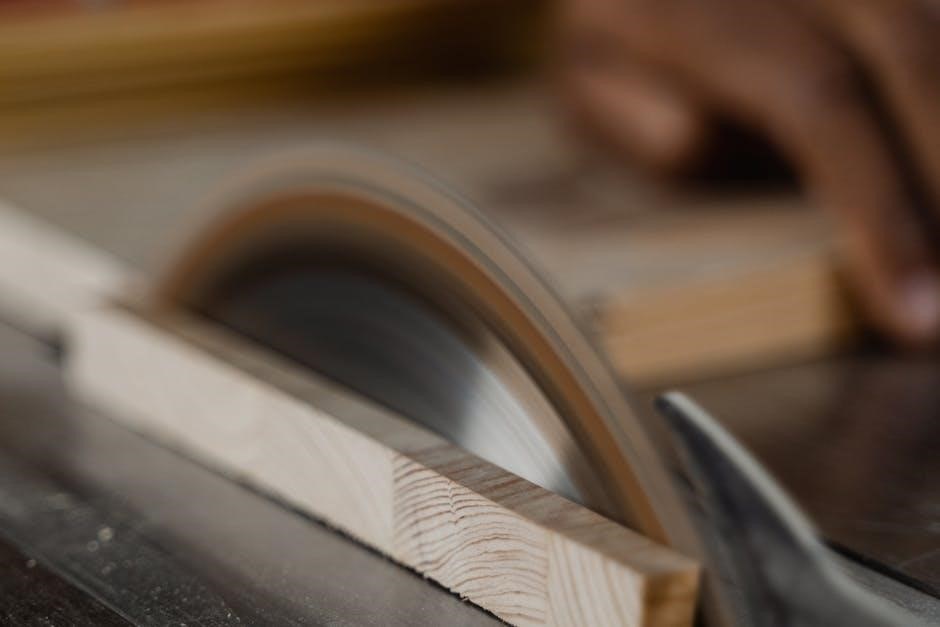 Before each use, inspect the saw for damage and ensure all adjustments are secure. Disconnect the power cord when changing blades or performing maintenance. Never reach over the blade or position hands near the cutting path. Understand the potential for kickback and use appropriate push sticks and featherboards. Prioritizing safety ensures a productive and injury-free woodworking experience with your Ryobi table saw.